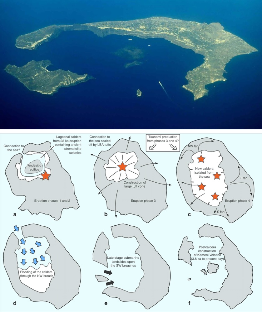 Formación de la caldera volcánica del anillo Santorini